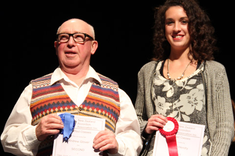 Next came the prize giving for the Saturday morning session with cup presentations by NZAA President Sonja Palinich. Veronica Dowd and Craig Jeffries |