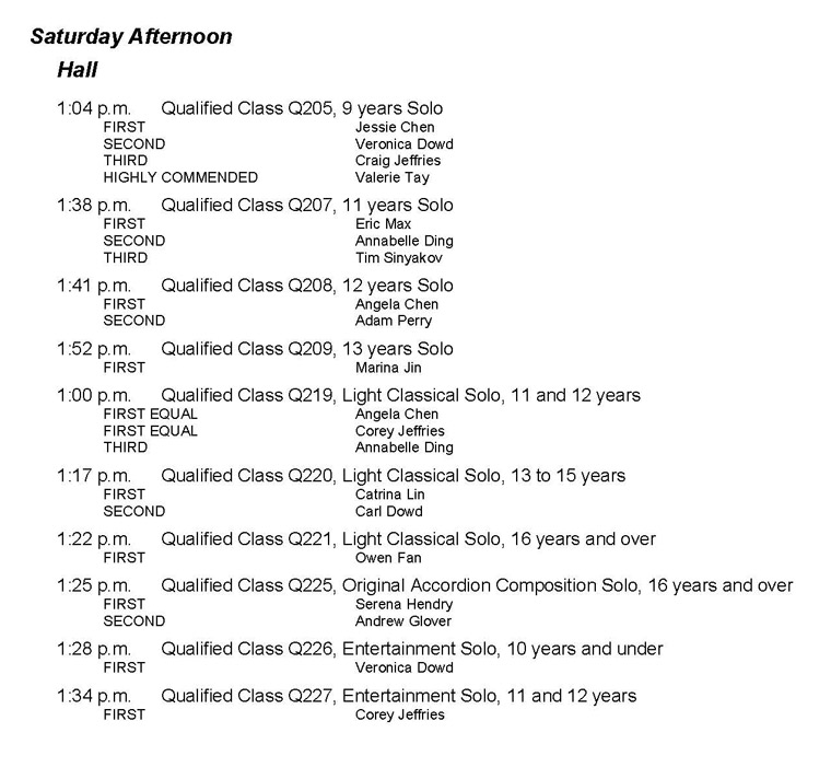 | Corey Jeffries and Adam Perry were awarded 2nd equal with Angela Chen a 1st |