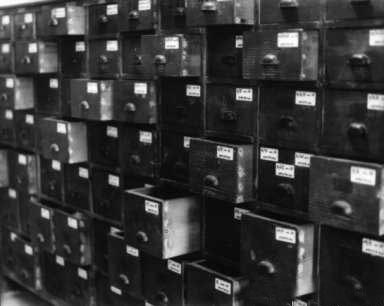 The photo shows the wooden drawers where the reed tongues, after they have been cut, are kept to avoid any oxidation / rust.