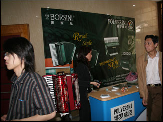 Fausel, Hohner Accordion Product Manager at the Hohner display
