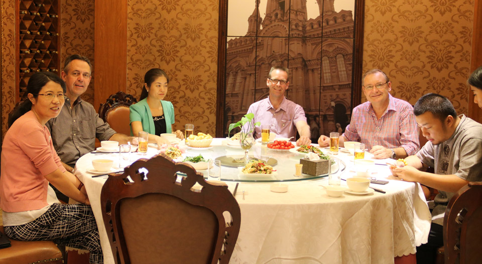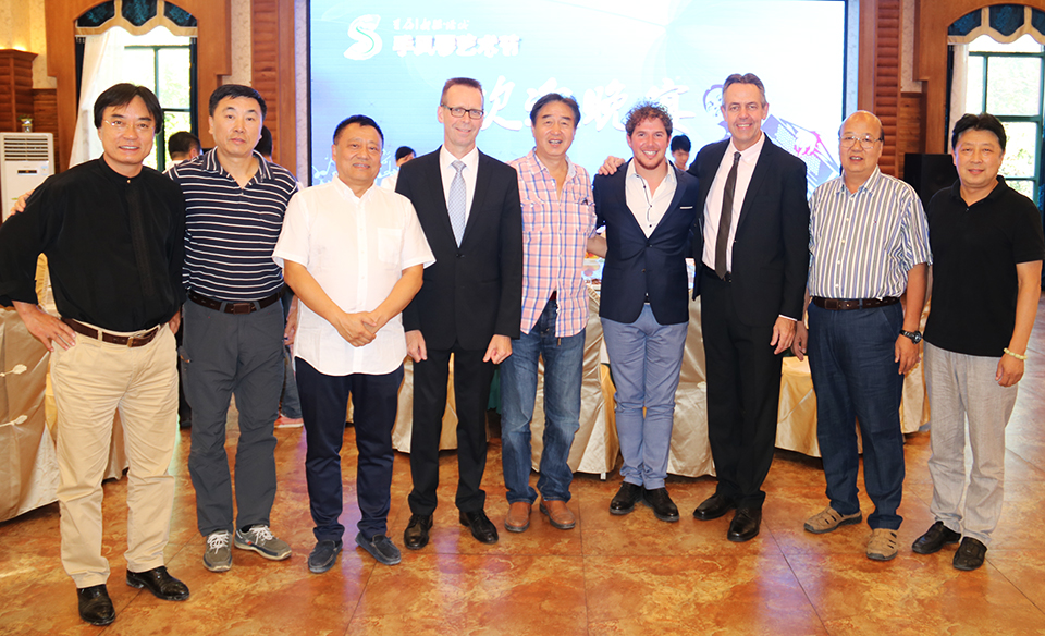 | Welcome dinner with Officiator from Guinness Book of World Records in Beijing, Kevin Friedrich, Zhang Li Yan, Kimmo Mattila, Harley Jones and Ding Peng. |