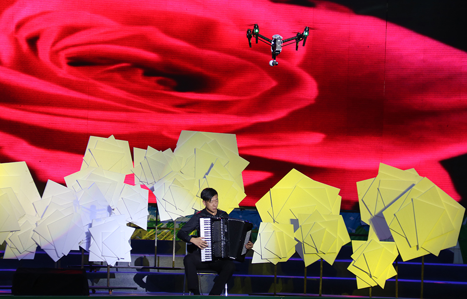 | Tan Jia Liang (accordion) (note in the outdoor setting the drone was an integral part of the filming equipment) |