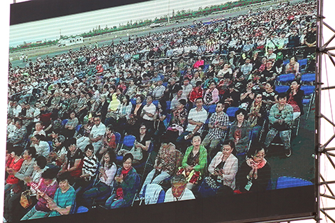 | The audience as viewed from the Jumbotron screens, and the Chairman of the Culture Center - Zhang Yan | |