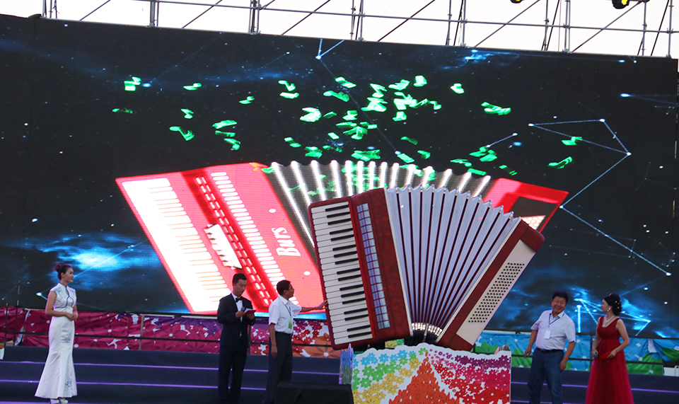 | Unveiling of the new giant accordion which will be housed at the Tacheng Accordion Museum | |