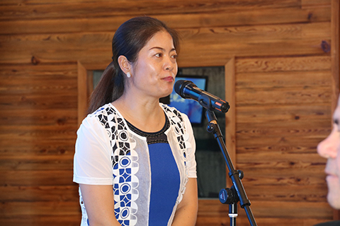 | Chairman of the Culture Center - Zhang Yan with Ding Peng translating. | |