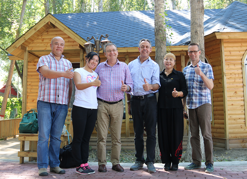 | CIA Guests Harley Jones, Kevin Friedrich and Kimmo Mattila with Zhang Li Yan (Tourism Board of Tacheng) and the local hosts. | |