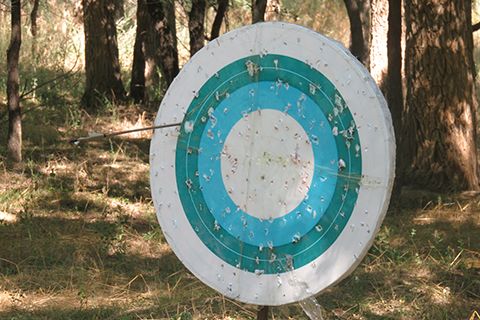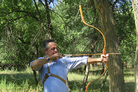 | CIA Ambassador Kevin Friedrich trying his hand at the bow and arrow shooting. While not a bullseye, he was happy to at least hit the target! | |