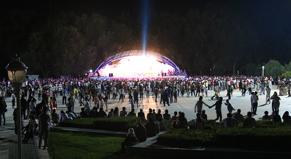 | Beautiful crowd scene of enjoyable music and dancing in the park. | ||