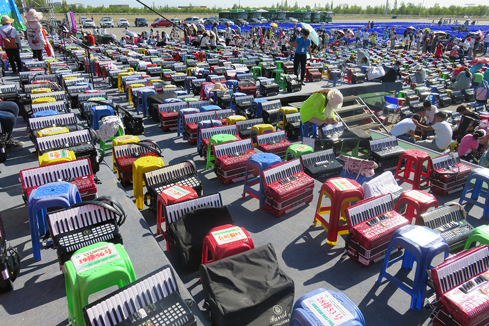 | 1,500 accordionists rehearse in Tacheng. | ||