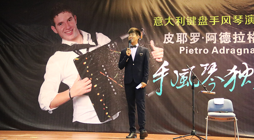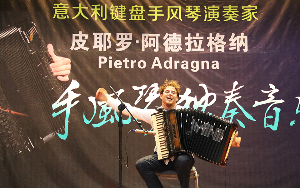 Pietro Adragna (Italy), the winner of numerous International Competitions performed to a capacity audience primarily made up of children. They thoroughly enjoye their afternoon concert with most rushing to the stage afterwards to take picturs and collect autograhps from Pietro. |