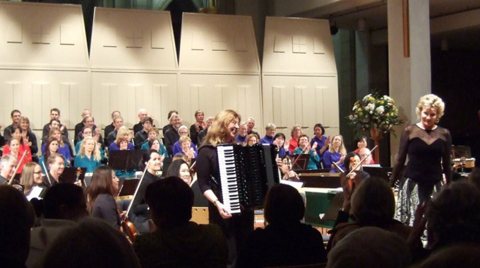 Accordionist Stephanie Poole performed the bandoneon parts,