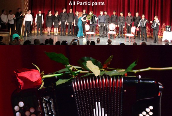 Photo above: All Participants. A red rose symbolising "We love the accordion!" was on the stage for the concert. The World Accordion Day Gala Concert was a celebration of the International holiday and birthday of the instrument accordion organized by the Macedonian Association of Accordionists “Ljubiteli na klasicna muzika” Skopje.