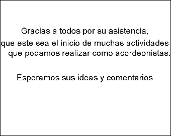 Accompanied by wine and snacks, accordionists and and the general public showed great enthusiasm for this celebration, which was an outstanding opportunity to share experiences, and to listen and play wonderful music.