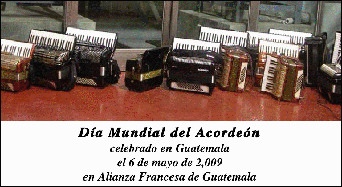 On Wednesday May 6th, at 7:00 PM, for the first time in Guatemala, an accordionists gathering was held in celebration of the World Accordion Day.
