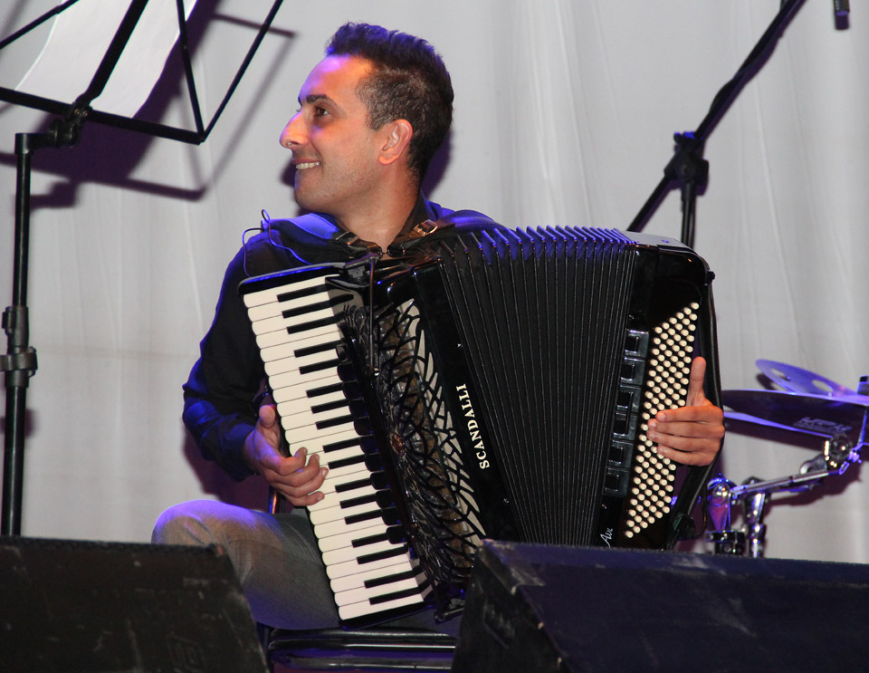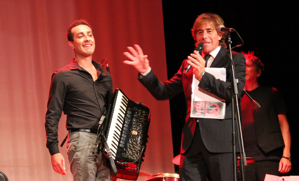 | Ladies from the evening sponsor Scandalli Accordions Office, Selenia, Lu Bin and Elisa. | Compere Alvin Crescini. | |