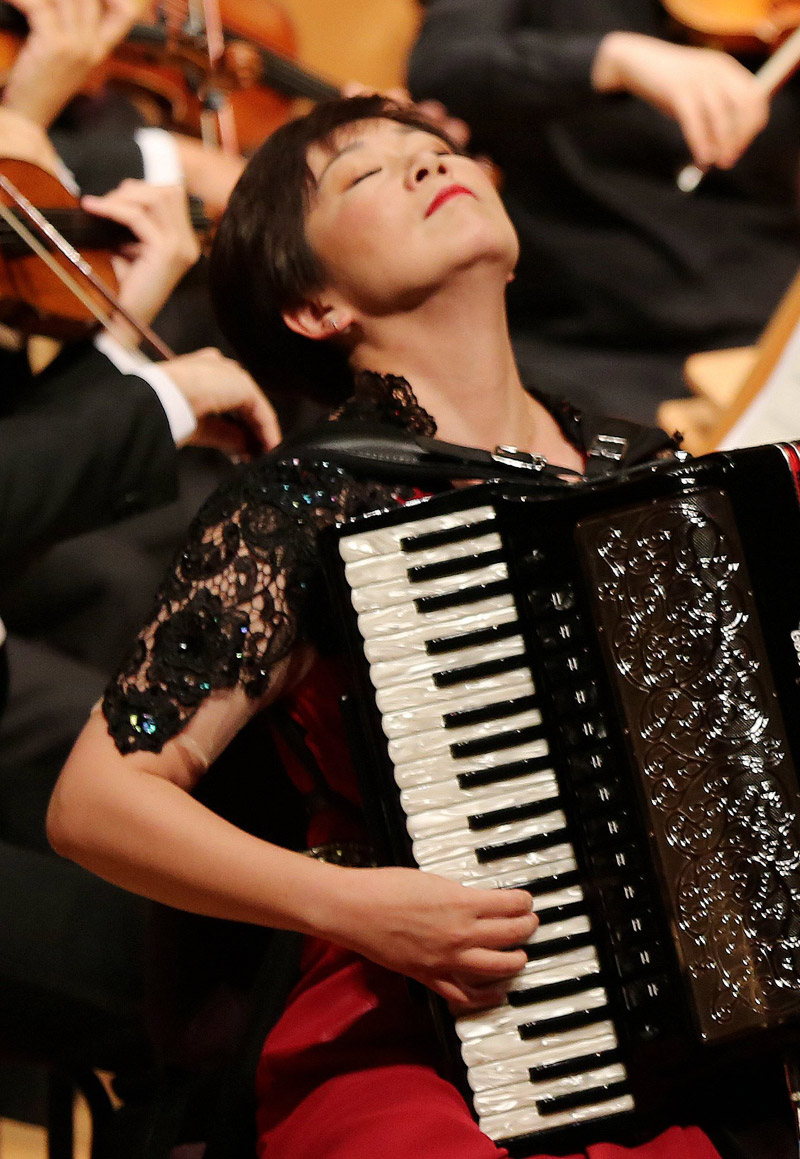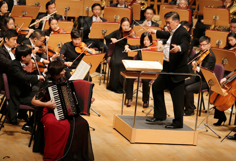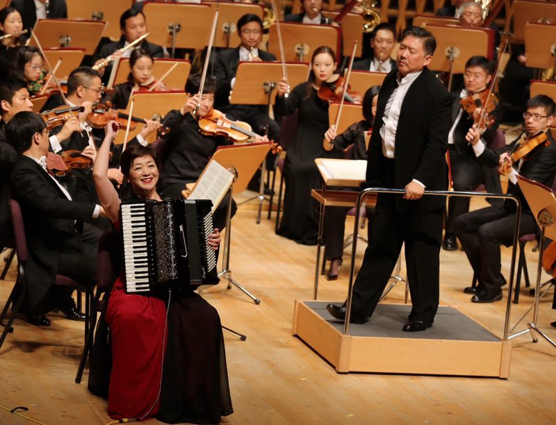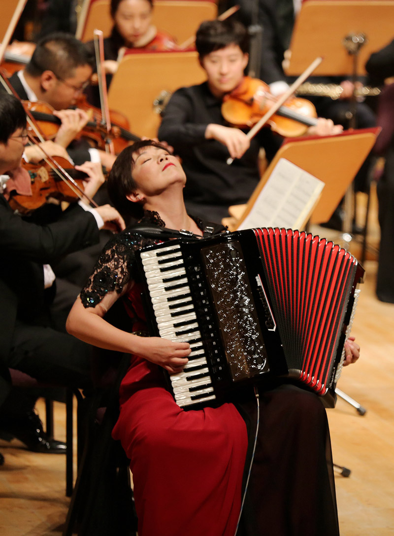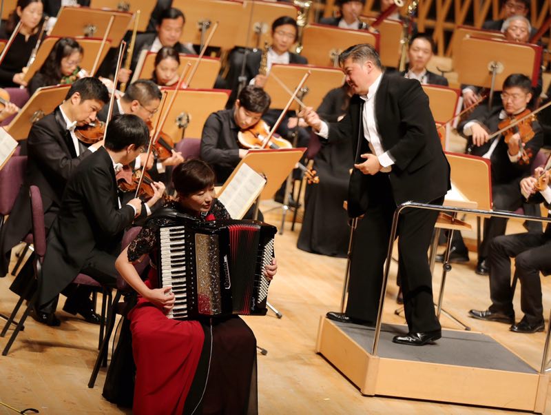 | Crystal Wang Performs With Shanghai Symphony Orchestra - China Weekly News accordions.com report dated: 20th September 2017 Crystal Wang, internationally known teacher and Assoc. Professor, Music College of Shanghai Normal University (SHNU), Executive Secretary of the China Accordion Association, performed with the Shanghai Symphony Orchestra conducted by Yu Long on 10th September. The concert celebrating the 33rd Teachers' Day was held in the prestigious 1,300 seat Main Hall of the Shanghai Symphony Orchestra and Crystal Wang and the Shanghai Symphony Orchestra performed the ever popular Carnival of Venice (J. Benedict). It was very pleasing to have the accordion so prominently represented at this high profile Teachers' Day concert . The excellent performance by Crystal Wang was very well received and there was extended applause from the large audience. |