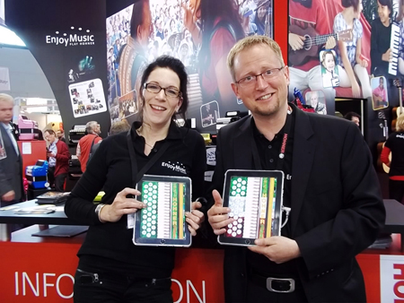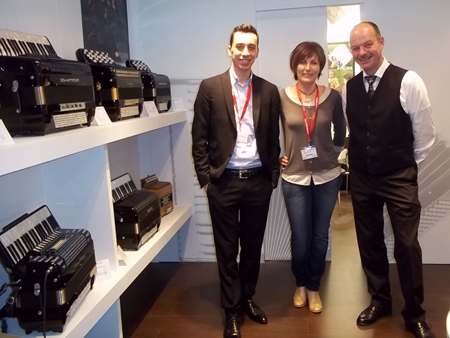 | Hohner Stefanie Zimmer and H.Niederwieser and right...Horst Fausel | with new stand and new products.......the diatonic Squeeze Box Accordion Application |