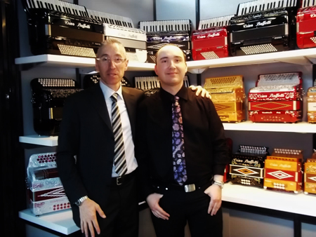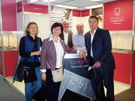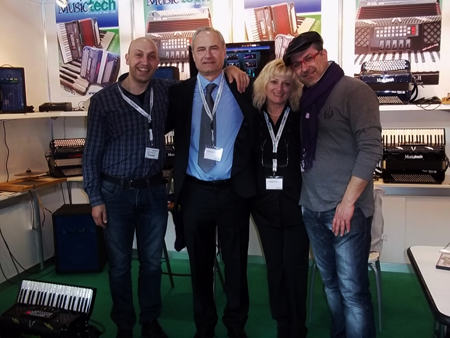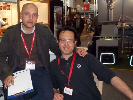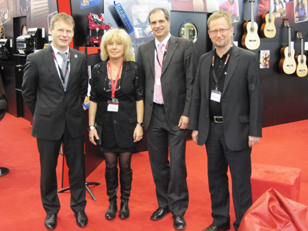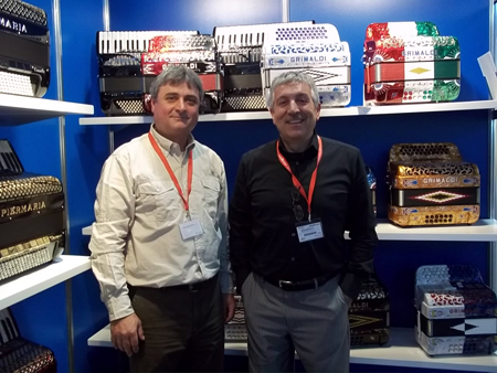 | Davide Fabrizzi/Gianluca Bibiani from Strumenti e Musica/Italy | Bruno Casali and Anacleto Gabanelli IMC presenting new brand Grimaldi |