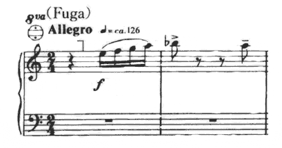Come mostra l'esempio n. 5, all'inizio della Fuga (IV tempo) è indicato