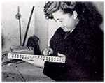are various stages in the assembly of the accordions' treble keyboards