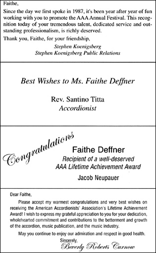 lifetime of services to the development of the accordion in New