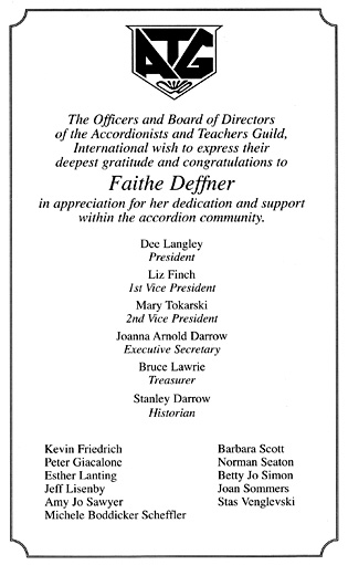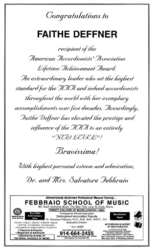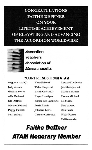 to New Zealand accordionists over the years. Faithe Deffners