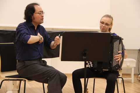 | More than 40 students attended the masterclasses by tutors: Prof. Xiaoqing Cao (China, Central Conservatory of Music, Beijing), Prof. Geir Drausvoll (Norway, Royal Academie Kopenhagen), Prof. Stefan Hussung (Germany, Musikhochschule Würzburg), Prof. Klaudisz Baran(Poland, Chopin Akademie, Warsaw) Prof. Elbieta Rsinska (Poland) Rafal Grazka (Poland). |