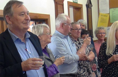 Above left: Harley Jones presenting his speech - Above right: Kevin Friedrich, Gary Daverne and Harley Jones at the reception |