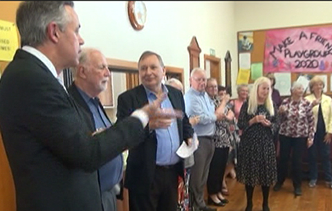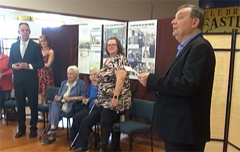 Kevin presenting the ANZAC accordion by Mosaic artist Kim Harrison