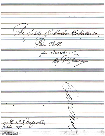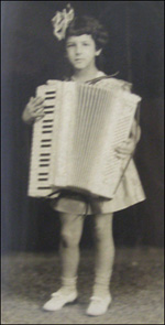 | The lessons were something else!!! Mostly my sister brought me, and to her credit she carried my accordion on the subways and everything! When I would go for a lesson, we would wait in his Den. His den was about the same size as where we are today (an average size) and so we would just sit in this den, and wait. We would sometimes wait for hours until Frosini was ready to give me a lesson. When he was ready, he would call me from the second floor saying . Madalenn - Madalenn (like Mada-lane, Mada-lane) and that meant he was ready for me to go upstairs for the lesson. We would go through a lot of music and it all had to be by memory. I saw he had the button accordion, and I would keep asking.. "Mr. Frosini.. why can't I play that accordion" and he would say.. "no no that's the right one the one you are playing is the right one for you to play.. so stay with that." I had to leave here at 5 am in the morning to meet him. One funny story was, that there was a certain place he always wanted to eat. So he said.. "come on.. we are going to have breakfast now." The place was all mirrors and when we went in he slammed right into the mirrors, and he then said "I do that every time I come in here!" Frosini had a lot of eccentricities. You didn't go for a lesson without bringing him a gift. He expected it. Usually it would be a box of chocolates or a cake or something. The box of candy had to be a box where all the candy was different, and it could not be the box that tells you what is in each piece of candy, because he wouldn't eat it. He had to guess what was in there! There was a time we went there and we didn't bring anything. He said "you didn't bring me anything?" so he made my sister go out to the bakery that was on the way to his house and get him a Cushman's Cake. Another thing he was eccentric about was his pencils! He had a grand piano his studio, and he did most of his writing on there. He kept all his pencils lined up on the piano. One day I was coming from Julliard, and I wanted to do my homework and I couldn't find a pencil, so I took one of the pencils from on top of his piano. His wife came out screaming "don't touch... don't touch Friso's pencils." He had them all in order, in the way he wanted them to write with. No. 1, No. 2, dark, light, big note head and small note head and so on. He had them exactly as he wanted them. But boy when she started yelling at me!!! My lessons went on for quite a few years. He lived in Sunnyside, Long Island, which is where I would have to go for my lessons. |