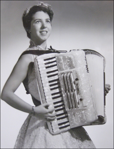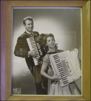 at my young age, it didn't make any difference to me.My most humorous moment was during a concert with Myron Floren. He was giving a concert here in Raritan, NJ. It was at the local High School and we all went including my sister, Faithe and Ernest Deffner, Frances Margolis a whole bunch of us. As normal, Mauro (Maddalena's husband) would always ask me to go on stage to play and play a duo with Myron. I didn't have my accordion with me, so we asked to borrow someone's accordion. Very begrudgingly they agreed but believe me, they weren't happy! Gramathow High School, was a brand new 8 million dollar School that they had just completed. Myron came out and introduced me, and I came out of the wings and didn't know there was a step there and I tripped down the steps! An eight million dollar school and there was a step to get out of the wings onto the stage! So I got myself up and Myron didn't even come to help me... as he was laughing his head off. I had this borrowed accordion on at the same time, and so the owner was having a fit! After the performance was over, I went out into the audience again and my sister started yelling at me 'boy you are clumsy!!' No-one even asked if I got hurt.. they were all just laughing!!! |