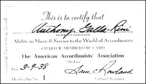 was one of the founding members of the American Accordionists' Association