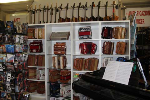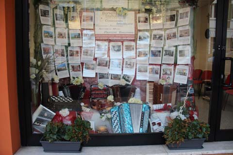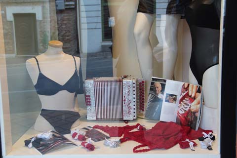 | accordion gadgets and shop windows in Castelfidardo - dedicated to the accordion | |