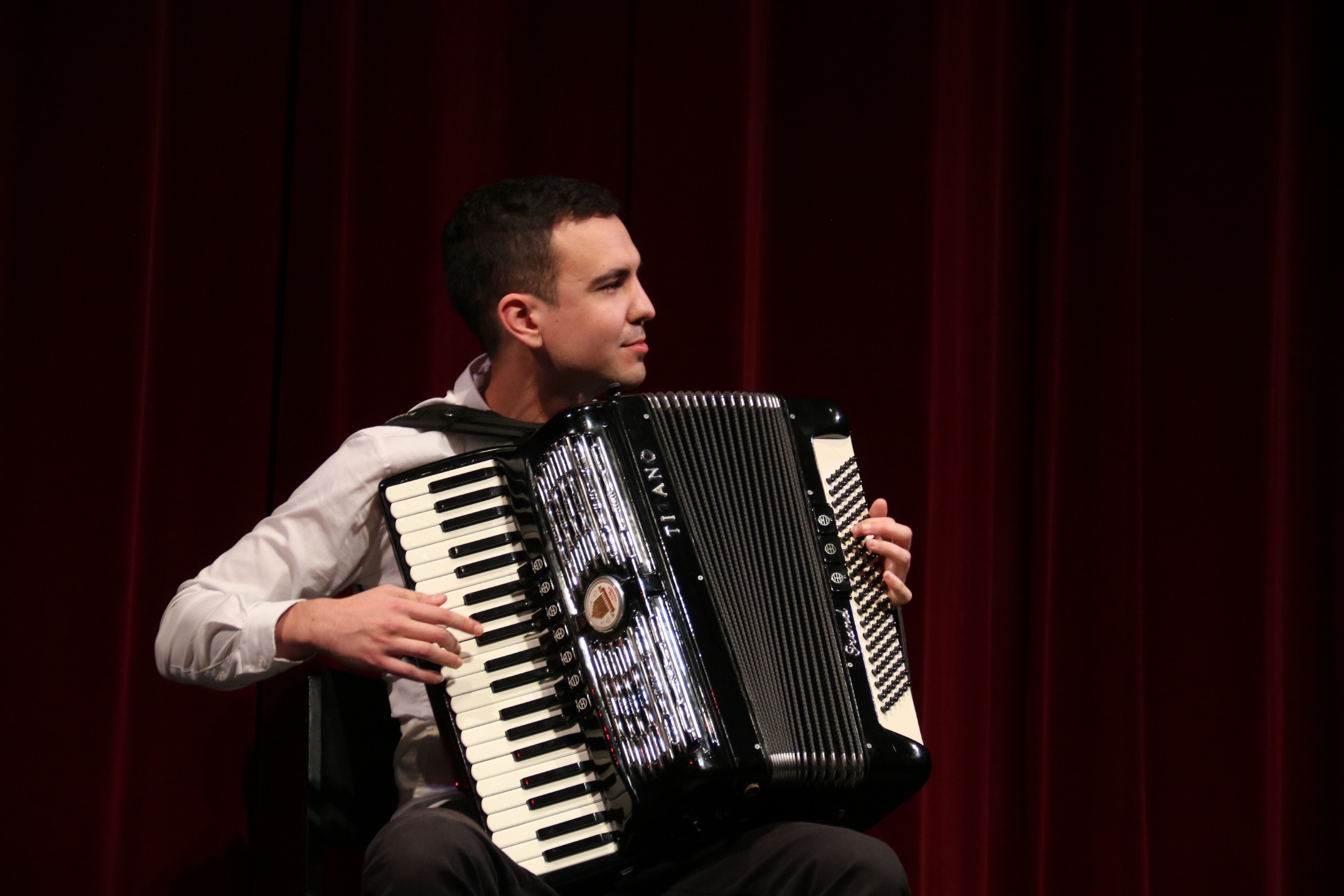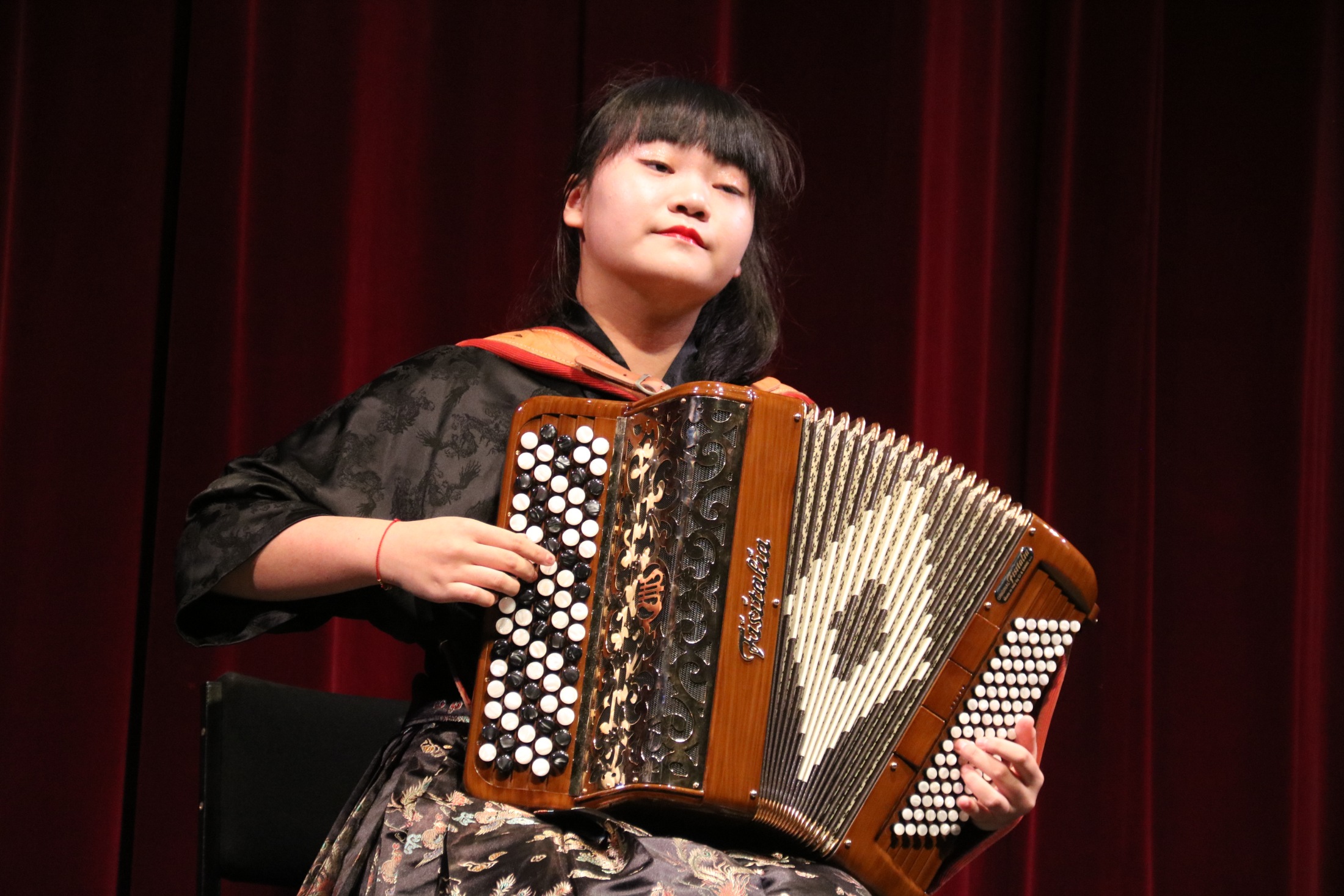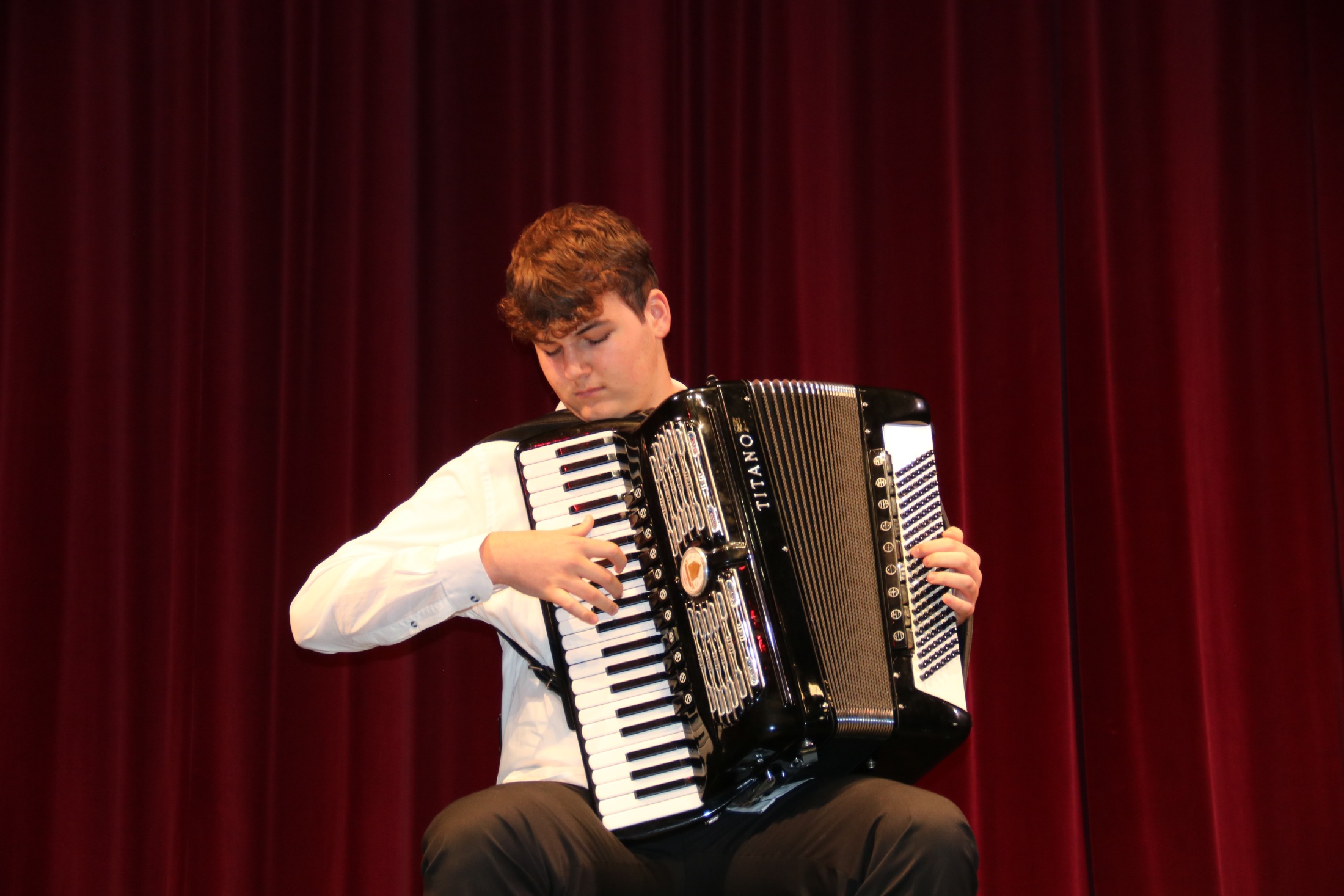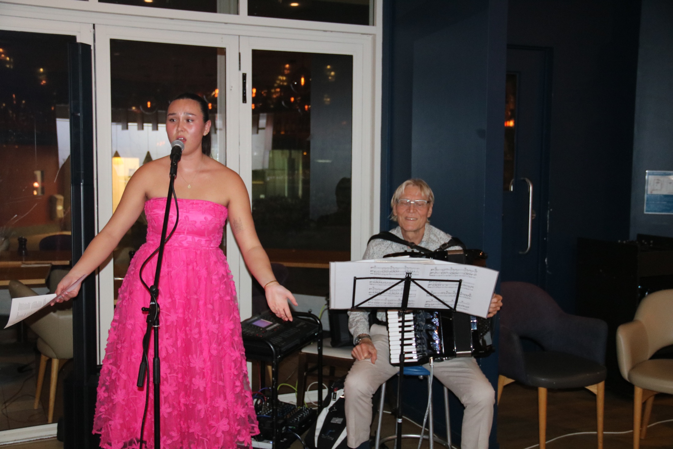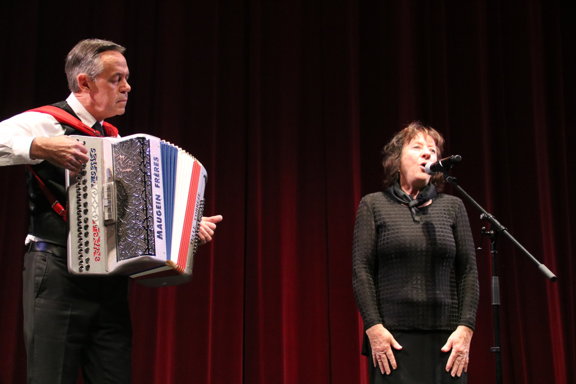 Description of pictures: 121 to 130 NZAA Massed Orchestra - Conductor Gary Daverne ONZM, First Accordion: Kevin Friedrich. The Massed orchestra performed Vienne composed by J Schrammel arranged by Gary Daverne and Orange Blossom Special also arranged by Gary Daverne. 131 Ketong Liu (China), winner of the SP250 12 years and under South Pacific Championships 132 Ketong Liu with her cup presentation. 133 Sven Balvan Q217, Own Composition Open Solo and Entertainment Solo, 16 years and over performed one of his compositions. 134 Introduction by Heather Gladstone of the French Edit Piaff performance by Kevin Friedrich with Ros Gilmour (vocalist). Kevin featured three historic instruments from the Accordion Gems collection at the Dargaville Museum. 135 and 136 featured the one off French flag colors historic accordion with special button/piano treble key layout. 137 Ros Gilmour 138 Kevin Friedrich introducing the NZ Kauri wood diatonic accordion. 139 duo with Linda Emmett Litt (percussion). 140 showing off the NZ fern image on the bellow. 141 Ros Gilmour 142 performing Jambalaya with the historic first accordion owned by Kevin Friedrich that was later owned by renowned radio entertainer Frank Vilich. 143 Andre Samatoi winner of the South Pacific Class SP252, South Pacific Accordion Solo Championship. 144 Andre Samatoi cup presentation. 145 - 150 NZAA Life Membership presentation to Marcel Riethmann. See Citation below. To end the concert was the North Shore Accordion Orchestra of 10 players, performing Menuett by Boccheerini and Baveria Medley arranged by Gary Daverne. NSAO Orchestra 153 Presentation by Maurice Jones to Kevin Friedrich of the first Titano accordion imported into New Zealand in 1957. This instrument is in original condition, never renovated and still plays well. Maurice had located the instrument in the South Island and purchased it for the Accordion Gems Museum display in Dargaville. 154 Kevin and school friends Lorraine Nielsen, Kevin Friedrich, Fiona Cocurullo 155 Ivy Du presenting teacher Heather Gladstone and husband Miki with some food delicasies to enjoy over the weekend. |