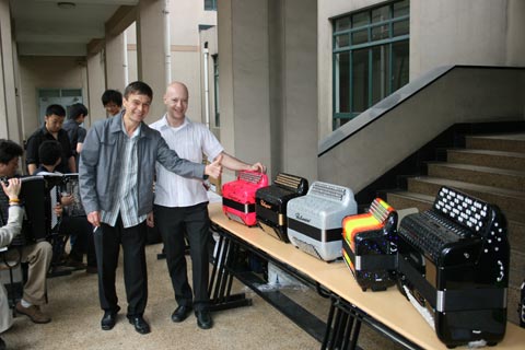 Xiao-Qing with President of the Chinese Accordion Association Ziqiang