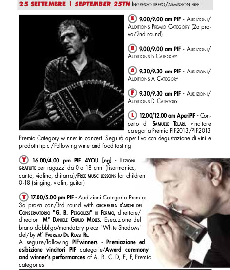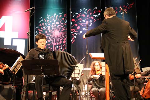 Entrants in the 3rd round performed with the String Orchestra of the “G.B. Pergolesi” Conservatory of Fermo, conducted by Daniele Giulio Moles at the Astra Theatre. The three finalists in Round III were required to perform the music “White Shadows” (Rai Publishers) composed by Fabrizio De Rossi Re. This work is liberally inspired by the film “White Shadows in the South Seas” by W.S. Van Dyke (1928). You can download the Score and the Solo Accordion music and listen to the videos of the three finalists below. |