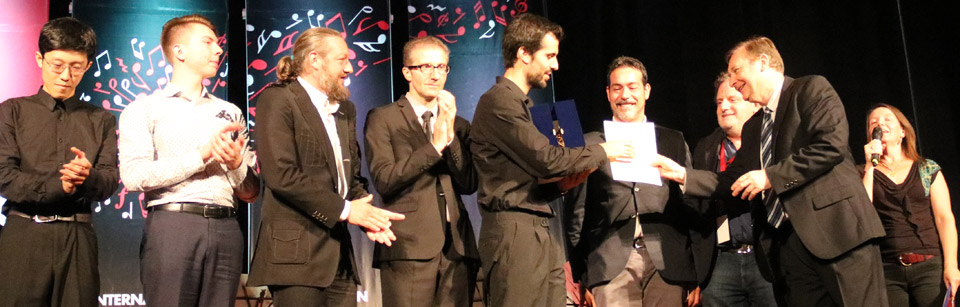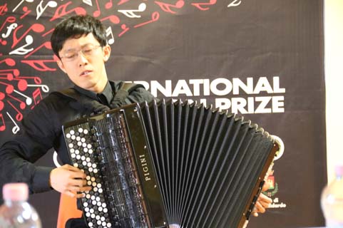 Valente José (Portugal) with his teacher Prof.Geir Draugsvoll from the Danish Royal Academy of Music. Mao Junhao (China) with his teacher Cao Xiao-Qing other competitors, prof. and judges waiting for the final competition of PIF as audience Matteo Mengascini with Viivi Maria Saarenkylà Kimmo Mattila (Finland) and Alexander Dimitriev (Russia) Prof. Ciao Xing-Qing with his students from China