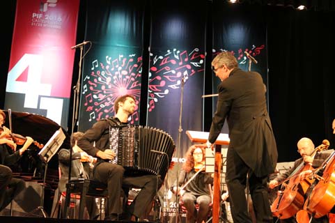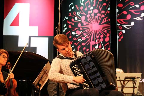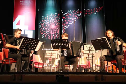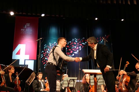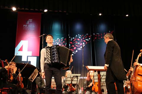 Winner Cat D - Adrshin Artur (Russia) Ceganjac Dusan (Serbia) Bianco Michele (Italia)Video: Winner Cat D - Adrshin Artur (Russia) Winner Cat. E - Lecce Accordion Project (Italy)Video: Winner Cat. E - Lecce Accordion Project (Italy) Winner Cat F - Mischa Duo (Denmark)Video: Winner Cat F - Mischa Duo (Denmark) 2nd place winner - Vio Dion Duo (Poland) 3rd placer winner - Korali Duo (Bosnia-Herzigovina)Video: The string orchestra and the winner of the PIF Cat. 2016 - Valente José (Portugal) returned to the stage to perform again.