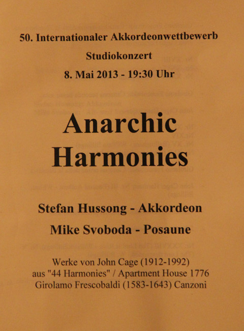| Mike Svoboda also introduced the program in English and proved to have a excellent sense of humour and fun attitude that had the audience laughing alot and enjoying themselves before the first note of music. | Stephan Hussong demonstrated his immense musicality as he and Mike performed this musical program in a way that reached the heart. |