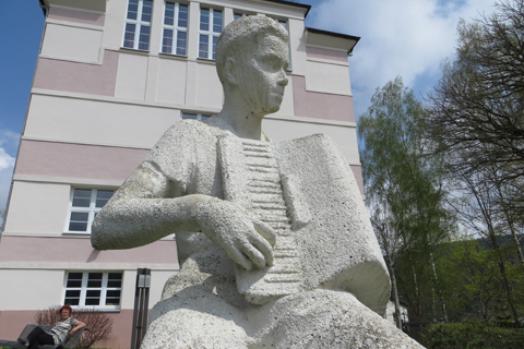 | Flute soloist with the Akkordeon Orchester Klingenthal e.V. | The next day, Tuesday 7th May, walking to competitions, we saw this accordion statute. |