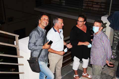 | Francesca and Federico Pigini with obligatory mask | Luciano Biondini with Riccardo and Elke. |