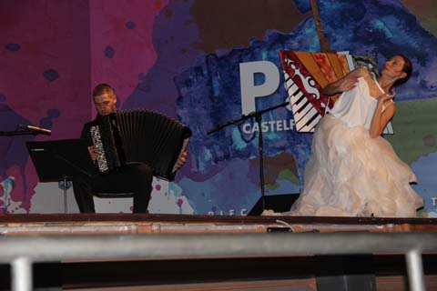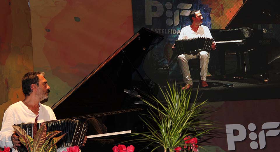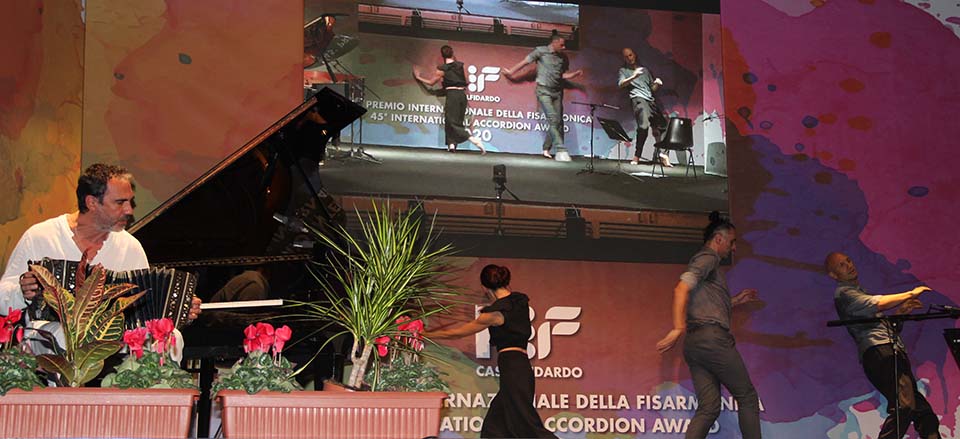 | Bandoneonist/Pianist Daniele Di Bonaventura with artists of the Compagnia degli istanti. | |