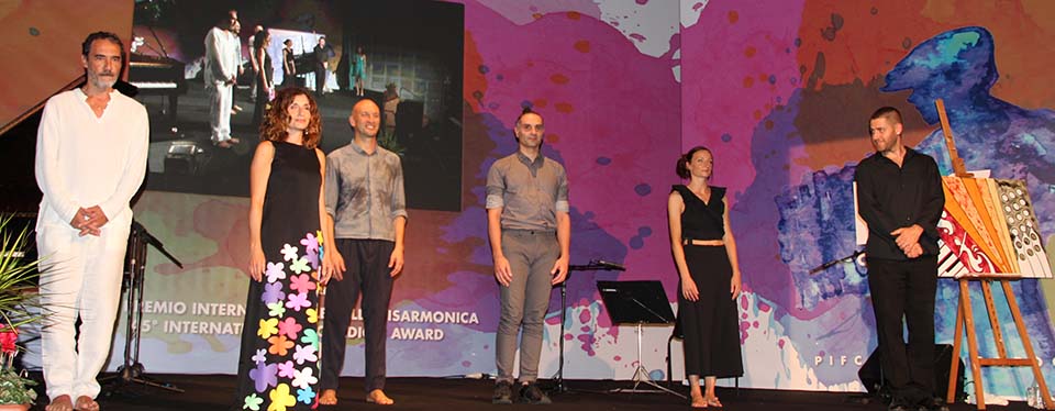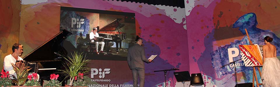 | Ruben Cittadini (ass/culture), Roberto Ascani (Mayor) Massimo Pigini (Pigini Accordions and also President of Music Marche Accordion Manufacturers Association) | Pif-Paolo and Renzo Ruggieri. |