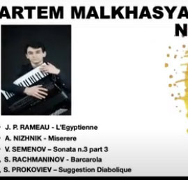 Video Times Jury Introduction 2:20 1. Ryan Corbett (United Kingdom) 5:15 2. Artem Malkhasyan (Russia) 31:14 3. Alberto Vernarelli (Italy) 1:09:34 4. Julien Beautemps (France) 1:38:40 5. Flemming Vioar Valmundsson (Denmark) 2:07:56 6. Augustinas Rakauskas (Lithuania) 2:39:00 Pause 7. Luigi Gordano (Italy) 3:22:26 8. Alexey Mykitenko (Russia) 3:46:04 9. Artem Trtiakov (Russia) 4:15:33 10. Zhang Zhiyuan (China) 4:27:45 |