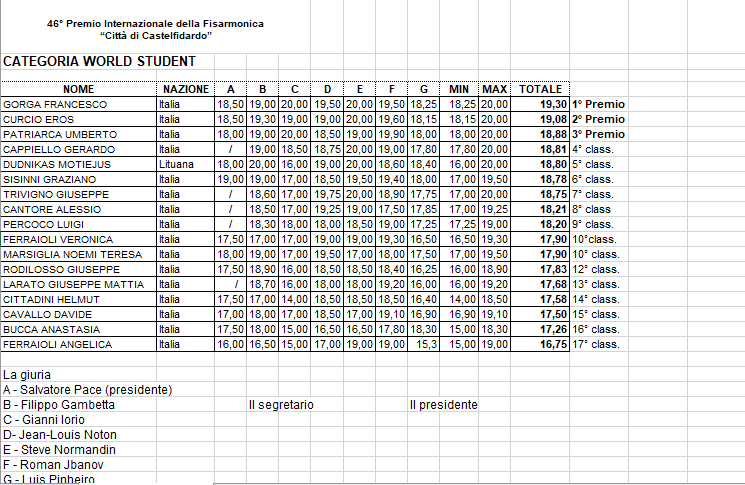 | 1st / cat. World Student awarded by Genuino Baffetti |