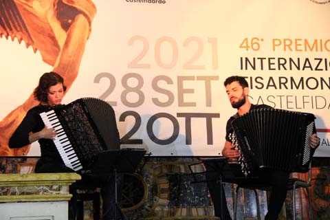 Simone Zanchini (right with Antonio Spaccarotella, just back from his long concert tour in Greece (and performing in the Saturday Closing Concert) did not want to miss the concert of Mestrinho - seems sleeping, but no - intensively listening to the wonderful and powerful performance of Mestrinho